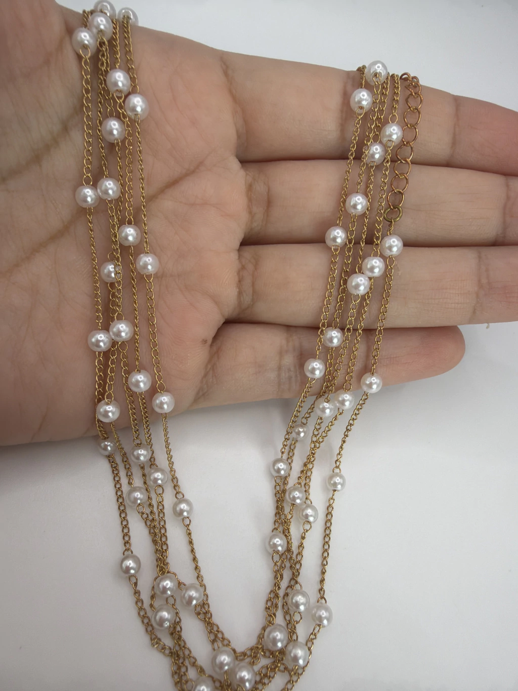 5 Choker Corrente e Pérolas 4mmFecho lagosta latão Tamanho: 37 centímetros + 5 cm extensor Peso Aproximado: 1.7 Gramas cada Material: Latão ( Alta fusão )Na cartela com 5 Chokers, Cada uma sai apenas 2,94