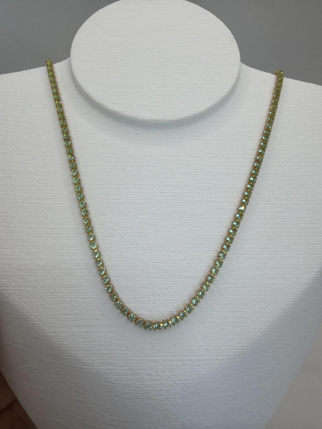 5 Chokers Riviera 2mm Verde claroFecho o lagosta latão Peso aproximado 4.2 gramas cada Material: latão ( Alta Fusão )Na cartela com 5 Chokers, Cada uma sai apenas 5,50 cada