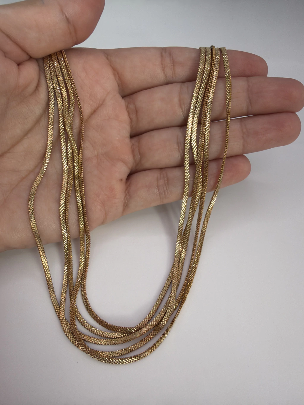 5 correntes fita trabalhada 2mm com 45+5 centímetros extensor