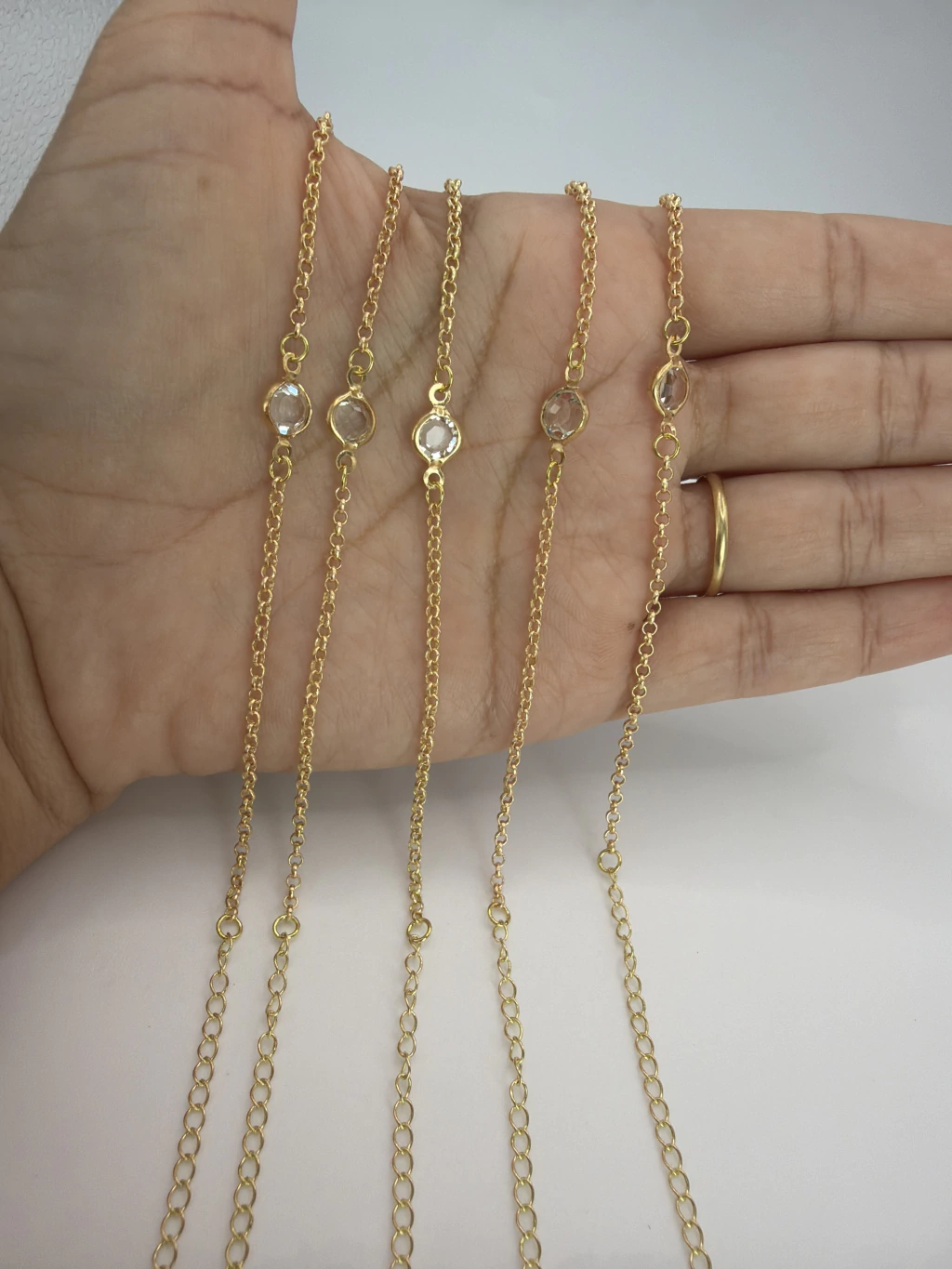5 Pulseiras Elo Porttugês com Cristal Redondo 8mm